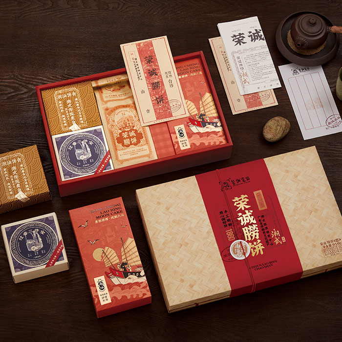 250g潮式双黄绿豆沙月饼x1+150g潮式蛋黄乌豆沙月饼x1+150g潮式老香橼味月饼x1+150g潮式香菇梅菜肉月饼x1+35g腐乳饼x6