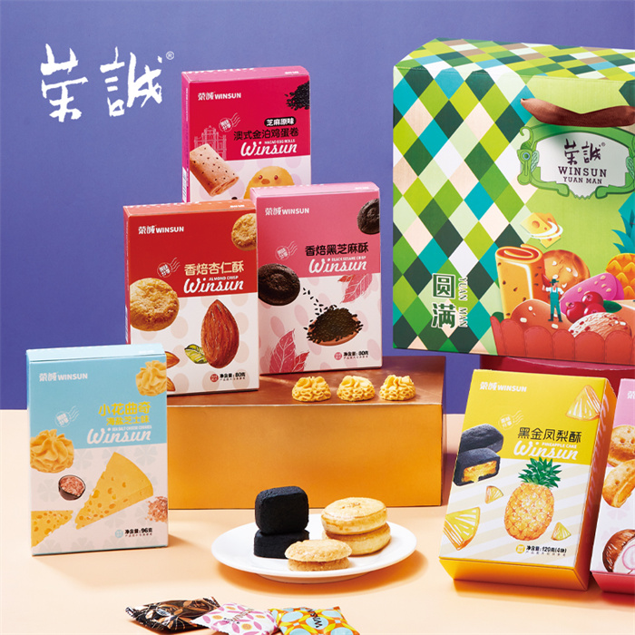 80g香焙杏仁酥x1,80g香焙黑芝麻酥x1,80g蔓越莓曲奇x1,80g椰蓉奶酥x1,80g澳式金泊鸡蛋卷(芝麻原味)x1,140g丝丝浓香雪媚娘椰蓉饼x1,96g小花曲奇(海盐芝士味)x1,120g黑金凤梨酥x1